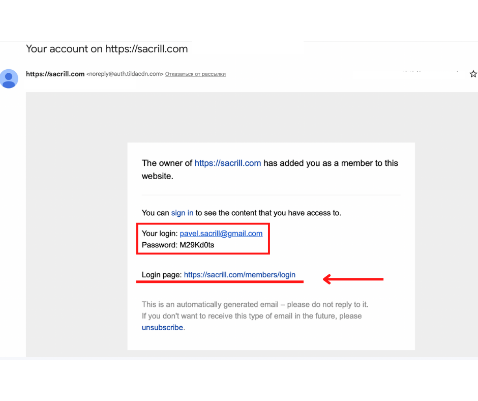 1. After payment you will receive an email with your login and password. Please make sure to check your SPAM and MAILING folders, as well as emails from the sender "noreply@auth.tildacdn.com". If you have not received access, please contact us at